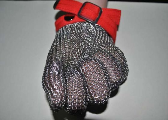 Matériel des gants de maille : fil de l'acier inoxydable 304 316, diamètre de fil de 0.5mm, anneau de diamètre de 4.2mm, ceinture en nylon sur le poignet pour ajuster la taille convergente